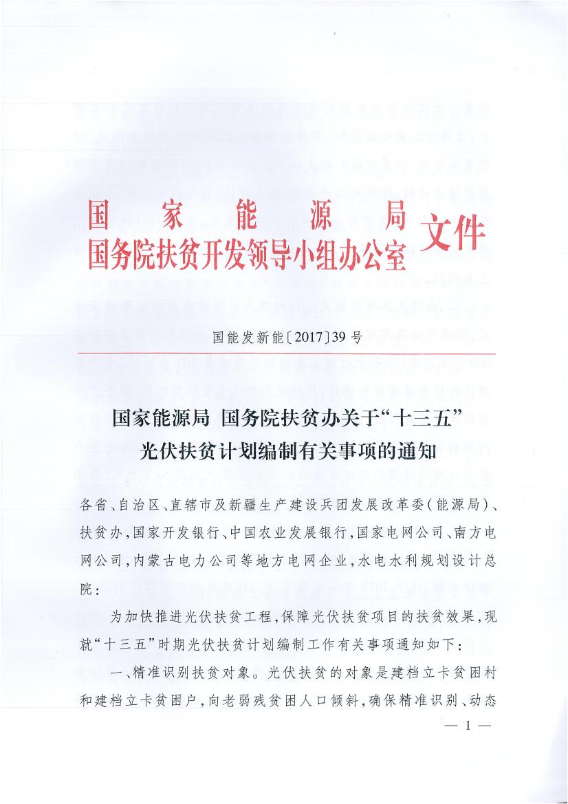 國家能源局、扶貧辦關(guān)于“十三五”光伏扶貧計(jì)劃編制有關(guān)事項(xiàng)的通知